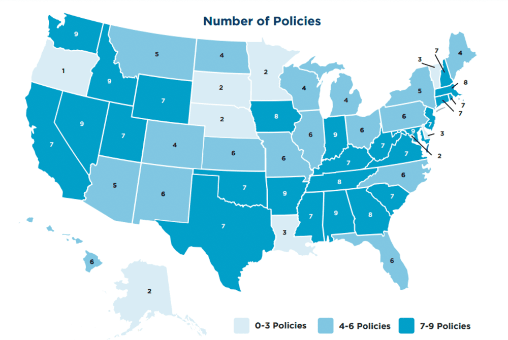 Overall, there is a relationship between the number of computer science policies adopted by a state and the percentage of public high schools offering foundational computer science. States that adopt more of the policies have a greater percentage of high schools offering computer science.