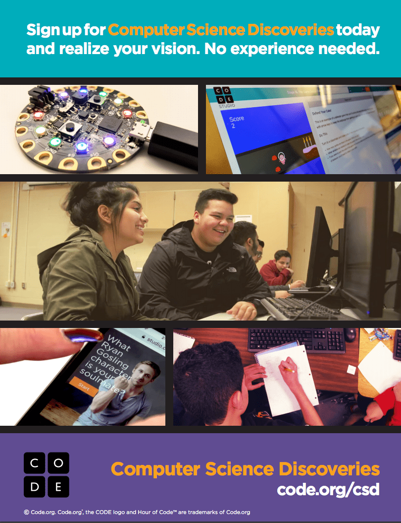 Close your session by handing out recruitment flyers for [CS Discoveries](/files/programs/csd-student-flyer.pdf) or [CS Principles](/files/programs/csp-student-flyer.pdf).